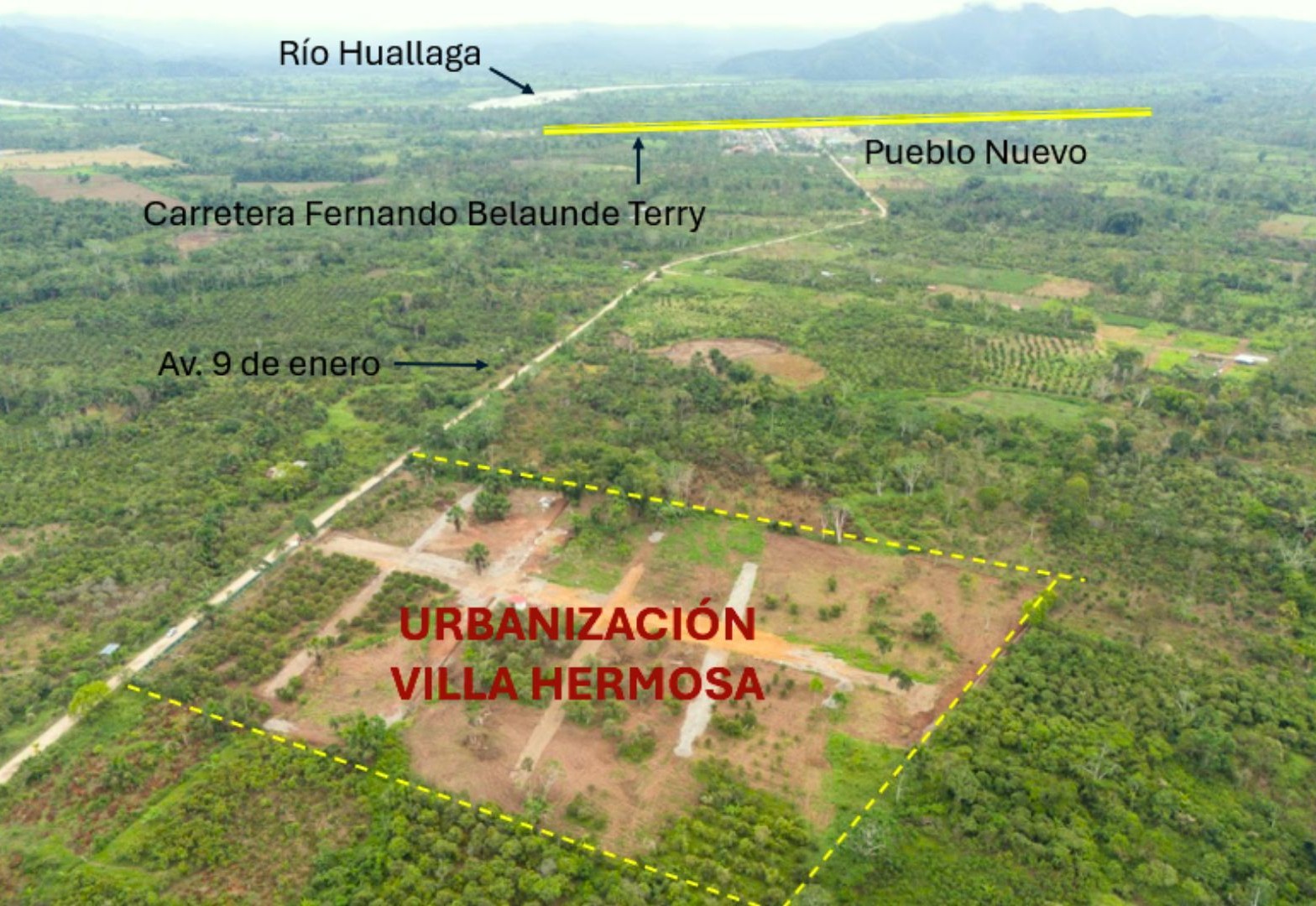 En la misma avenida 9 de Enero, en la ruta al nuevo Aeropuerto Internacional, a solo 3 min de la Carretera Central y Pueblo Nuevo que cuenta con: colegios, grifo, centro de salud, bodegas, ferreterías y comisaría.